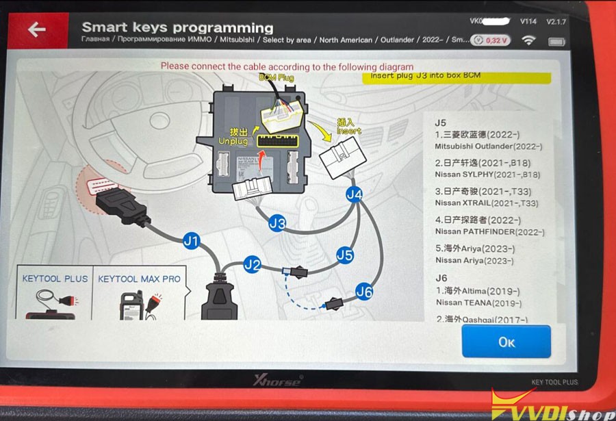 Cabo adaptador By-pass original Xhorse XDKP91GL (40 pinos BCM), ferramenta profissional para programação de chaves e acesso avançado ao módulo BCM.
