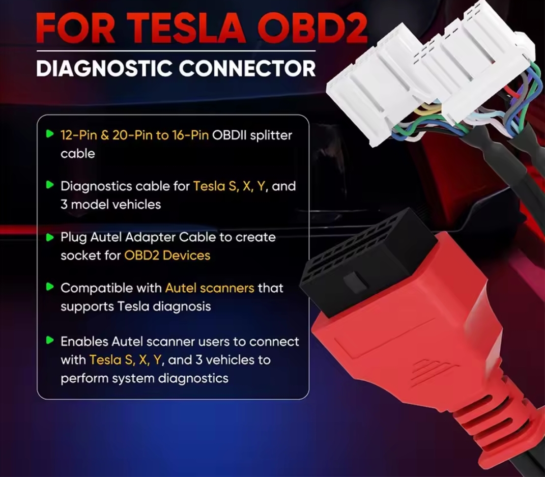 Cabo OBD Tesla 12+20 Pinos Máq. de Diagnóstico Autel, Launch, TopDon